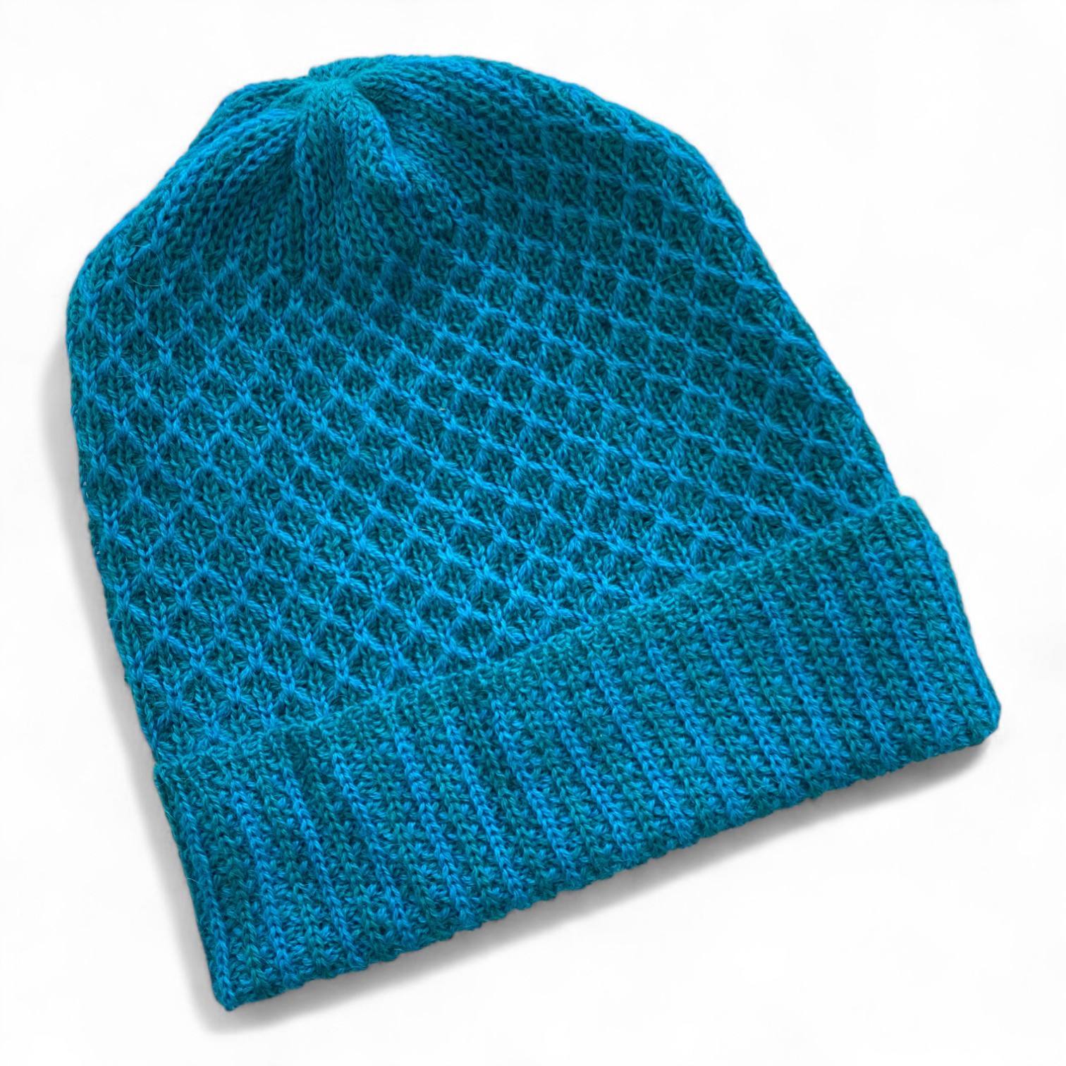 Reversible Hand Knit Alpaca Beanie - Teal/Blue