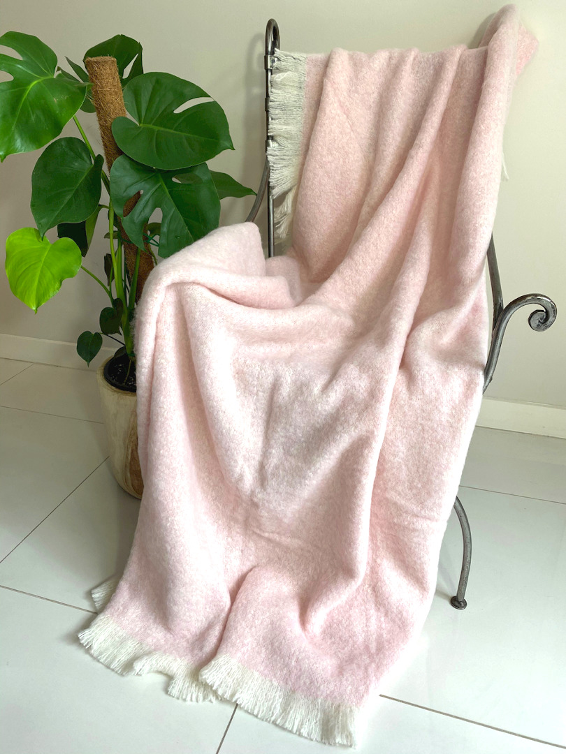 Alpaca Brushed Throw - Arctic Cream/Pink/Grey