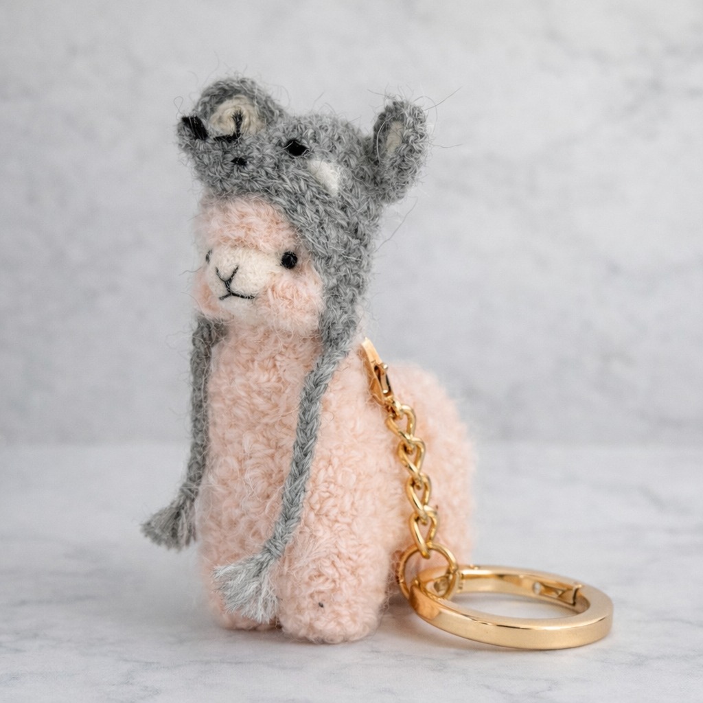 Handcrafted from alpaca and finished with a polished gold keychain, it’s the perfect mix of playful detail and everyday luxury.