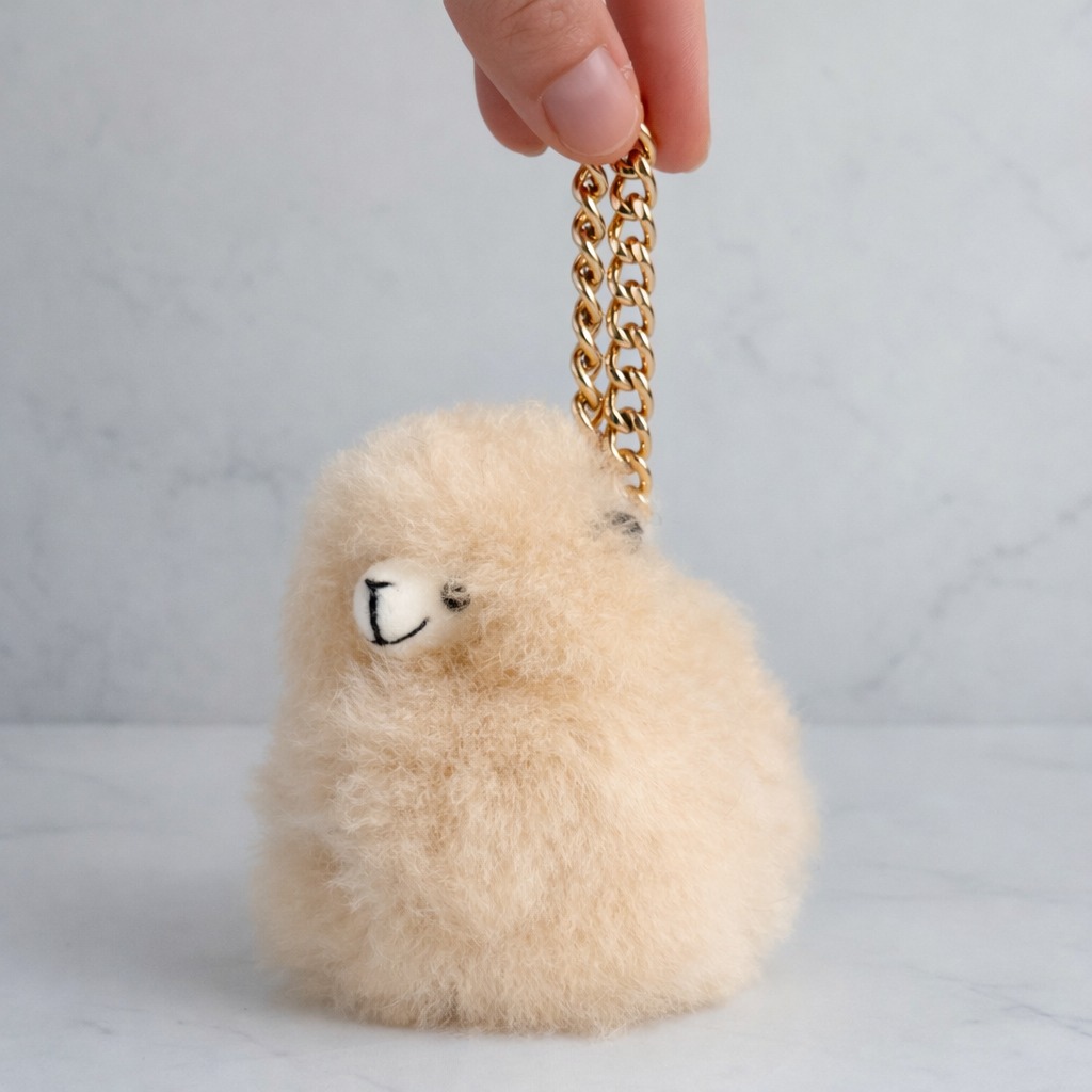 This fluffy alpaca is made from ultra-soft baby alpaca wool, giving it an irresistibly plush, cloud-like feel. With its rounded shape and gentle expression, it’s simple, cozy, and effortlessly adorable.
