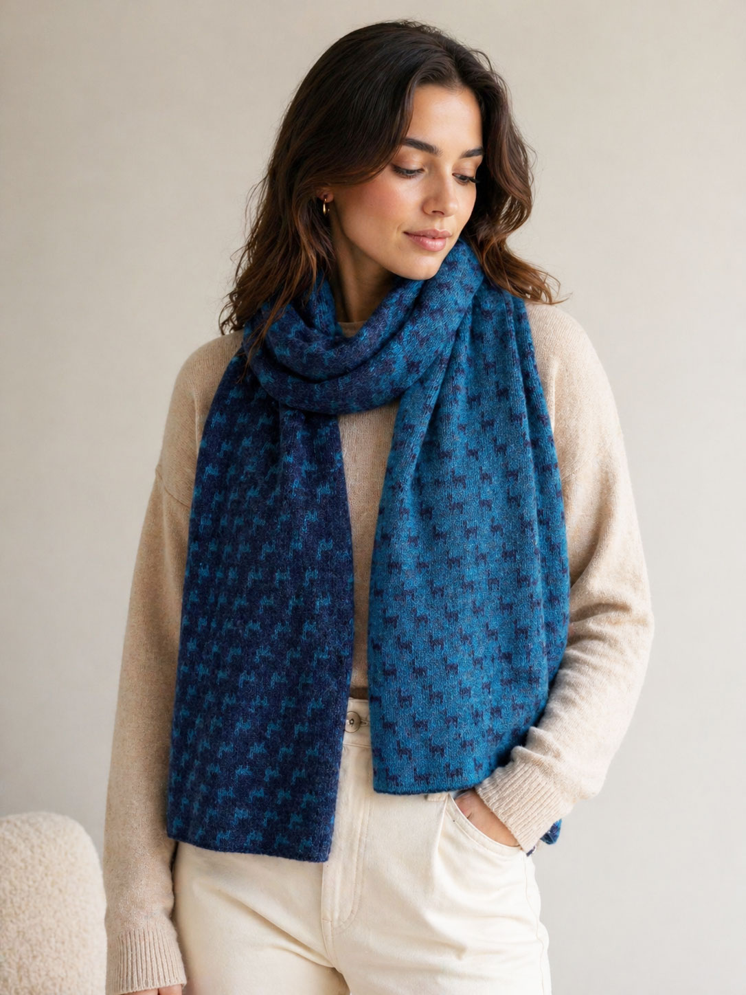 Alpaca Motif Scarf - Denim/Teal Melange - 1