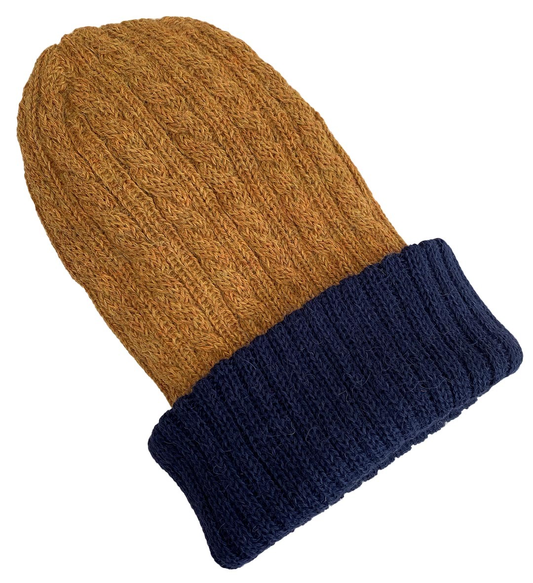 Reversible Hand Knit Alpaca Beanie - Navy/Mustard