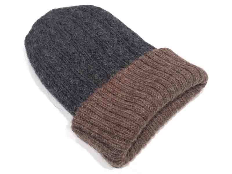 Reversible Hand Knit Alpaca Beanie - Black/Charcoal